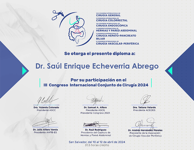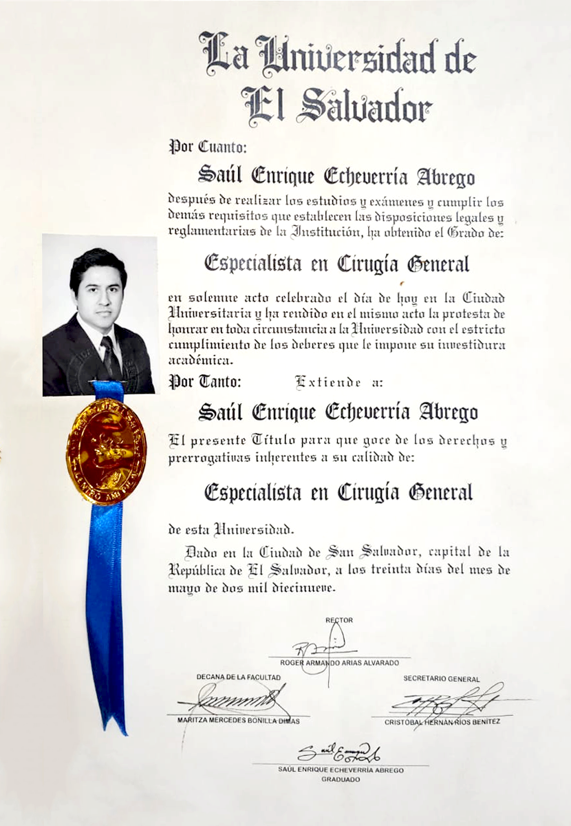 Desde el inicio de mi formación médica en la Universidad Nacional de El Salvador (UES), supe que mi vocación estaba en la cirugía. Me gradué como médico en 2015 y, con la firme convicción de seguir perfeccionando mis habilidades, obtuve el título de especialista en Cirugía General en 2019. A lo largo de estos más de 12 años de experiencia, he tenido el privilegio de ayudar a cientos de pacientes a recuperar su salud y bienestar, aplicando técnicas quirúrgicas modernas, seguras y efectivas.